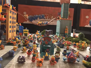 En el espacio central cuatro dioramas muestran las diferentes maquetas y juguetes de los SuperThings, entre ellos una recreación de la auténtica Kaboom City, donde se encuentran todos los personajes de la nueva serie Secret Spies. Estos son los verdaderos escenarios que han servido de inspiración para los spots de las diferentes series.
