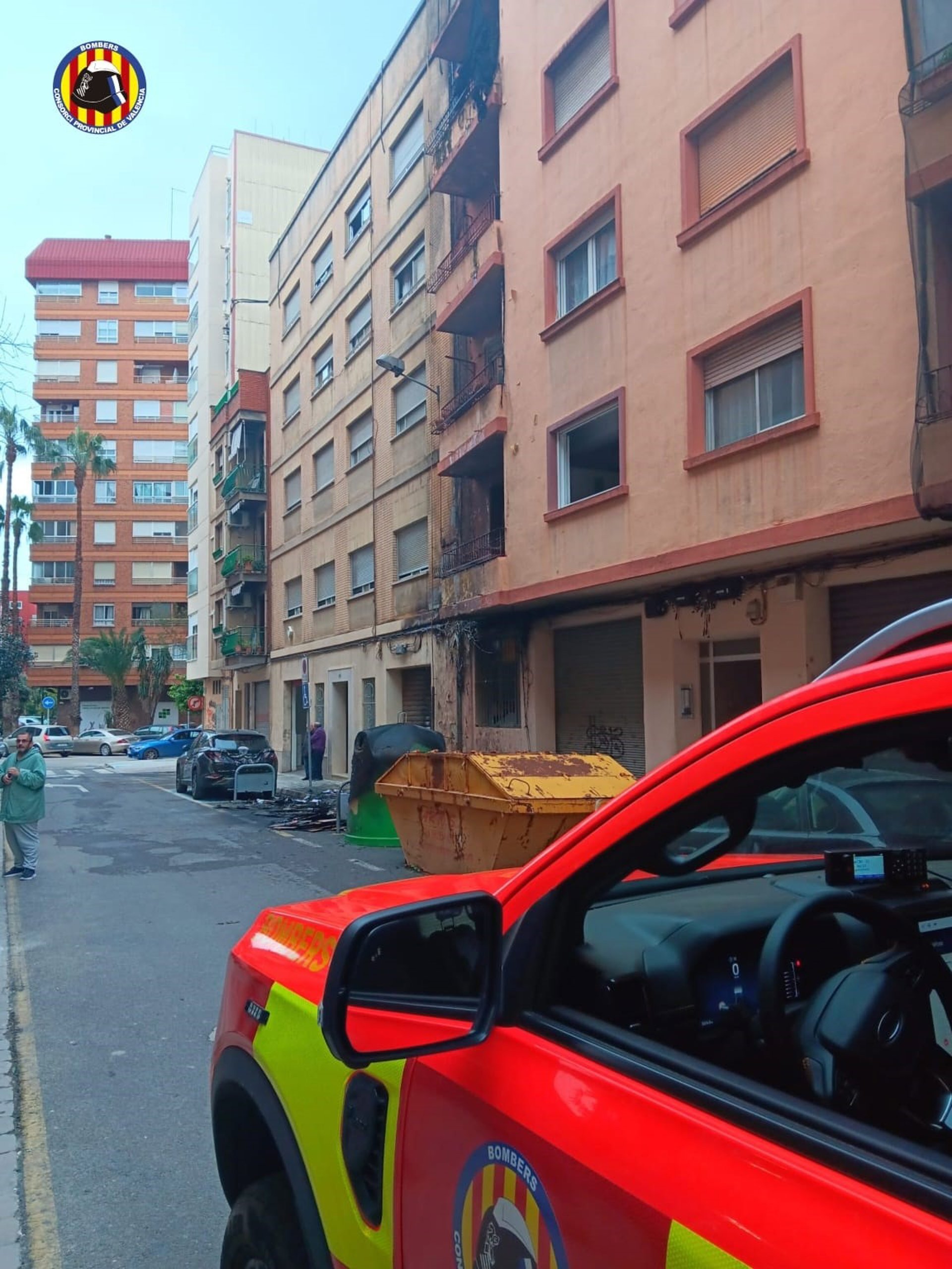 Extinguen un incendio en Mislata que dañó la fachada de un edificio y afectó a dos vehículos - CONSORCIO PROVINCIAL DE BOMBEROS VALENCIA