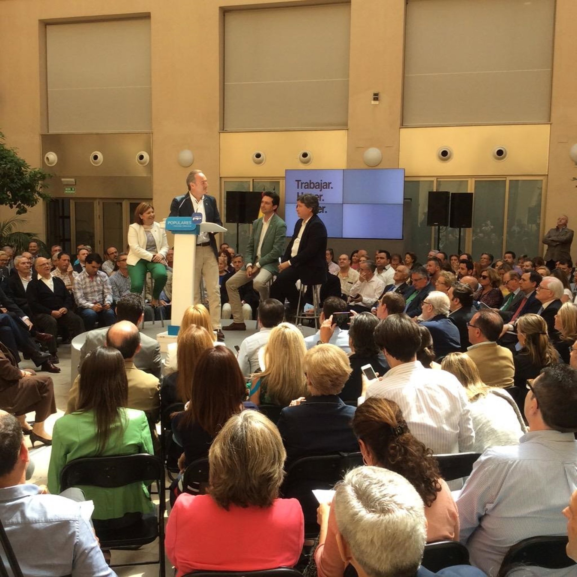 Fabra se ha expresado en estos términos en el acto 'Entre Tots Comunitat Valenciana', en el que ha presentado el programa electoral del PPCV para las próximas elecciones autonómicas del 24 de mayo. En el acto también han intervenido el conseller de Gobernación y Justicia y director del programa, Luis Santamaría, y el nuevo presidente del PP de la provincia de Valencia, Vicente Betoret, quien sustituye en este cargo a Alfonso Rus, suspendido cautelarmente de militancia tras unas conversaciones en la que supuestamente puede oírse contando billetes.