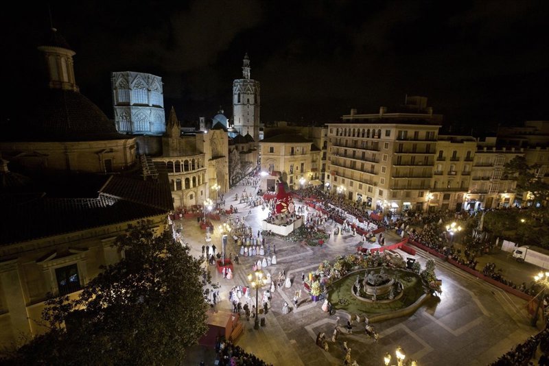 En esta cita participarán entre este jueves y el viernes más de 100.000 falleros y falleras, acompañados de músicos, según han indicado a Europa Press fuentes de la Junta Central Fallera (JCF) de Valencia. De este modo, expresarán su devoción a la 'Mare de Déu', ante la que depositarán más de 60.000 ramos de flores.