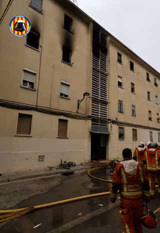 El fuego se ha originado esta mañana, sobre las 6.30 horas, en una vivienda de una segunda planta de un edificio de planta baja más tres alturas del bloque José Sales de Algemesí.