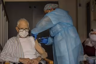 La mortalidad por coronavirus en las residencias valencianas ha experimentado una reducción drástica desde la llegada de las vacunas a estos centros. Así, si en la primera quincena de febrero, cuando se completó la administración de al menos la primera dosis, los fallecidos registrados fueron 347, en el mismo período de abril, la cifra ha bajado hasta las cinco víctimas, es decir, un 98,55 por ciento menos.