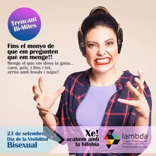 El colectivo Lambda de lesbianas, gays, transexuales y bisexuales ha lanzado la campaña 'Trencant Bi-Mites' --'Rompiendo Bi-Mitos'-- compuesta por cinco imágenes "potentes" con mensajes directos que pretenden trasladar a la ciudadanía el "hartazgo" de las personas bisexuales, ante la situación de bifobia que sufren.