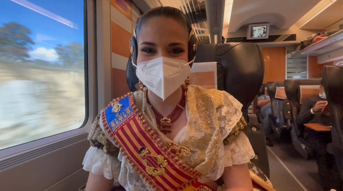 La Fallera Mayor de Valencia, Carmen Martín, en un tren - JCF