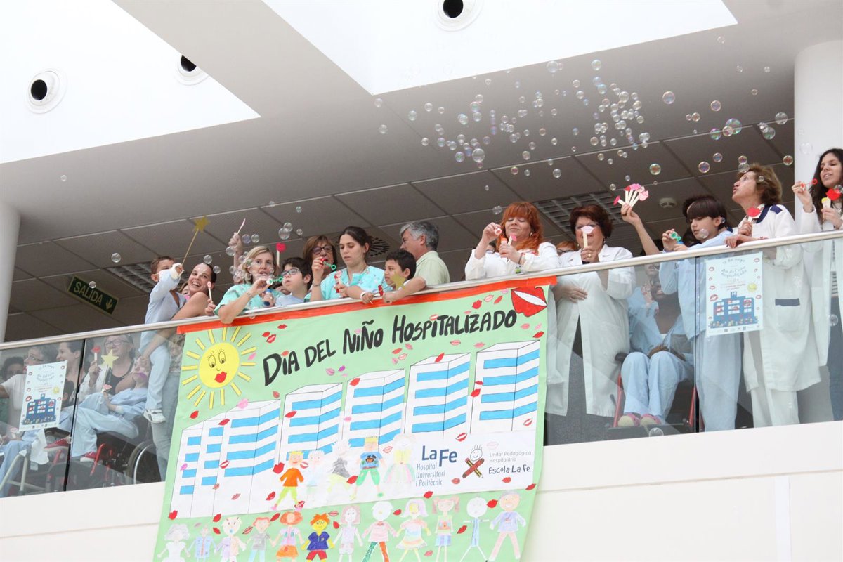 El Hospital Universitari i Politècnic La Fe se ha unido a la iniciativa de la Fundación Atresmedia para instaurar el día 13 de mayo como el Día Nacional del Niño Hospitalizado por lo que los pequeños ingresados, el personal que les atiende, tanto sanitario como no sanitario, los maestros de la unidad pedagógica y sus padres, familiares y amigos han salido de las habitaciones para lanzar "muchos besos".