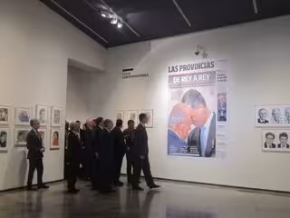 Ante una gran expectación mediática, Felipe VI ha recorrido durante casi media hora la muestra, en la que además de los retratos pueden verse numerosas portadas del diario, entre ellas una dedicada a la abdicación de Juan Carlos I, que el monarca se ha detenido a mirar.