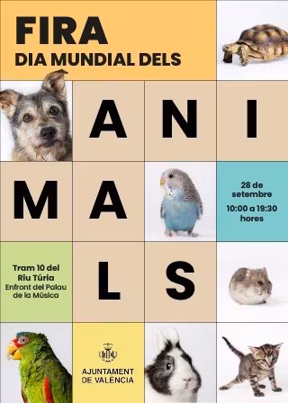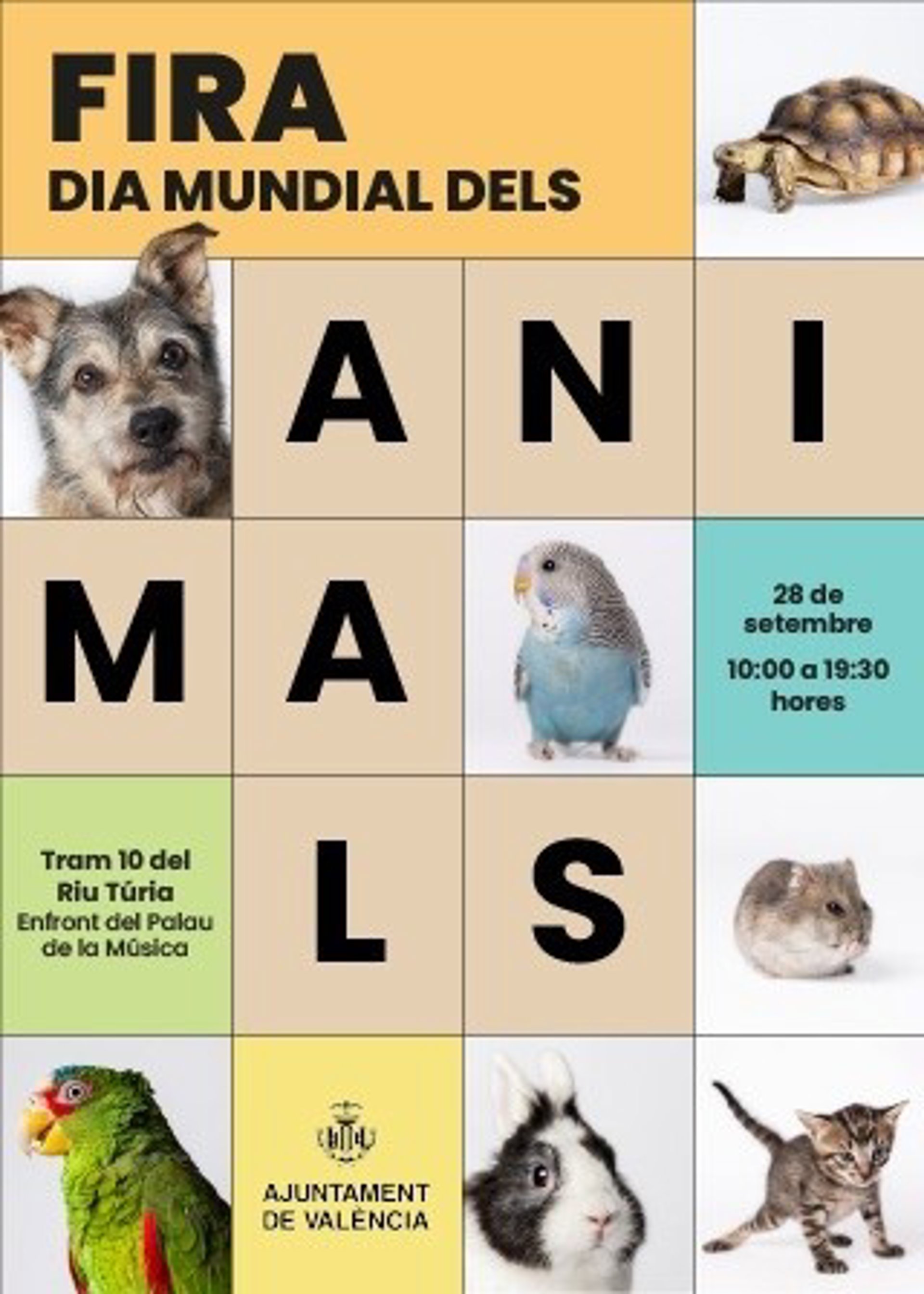 La Oficina de Bienestar Animal del Ayuntamiento de València ha organizado, con motivo del Día Mundial de los Animales, que se conmemora el próximo sábado, 28 de septiembre, la Feria de los Animales, que este año cambia de ubicación y se celebrará en el tramo 10 del Jardín del Turia, frente al Palau de la Música, según ha informado el consistorio en un comunicado.
