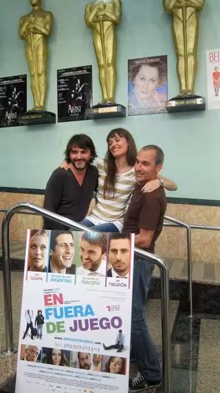 'En fuera de juego', que ha contado con la colaboración del IVAC y RTVV, llegará a las salas españolas el próximo viernes 1 de junio, se centra en Diego, un médico argentino traumatizado por el fútbol desde pequeño y que no está contento con su vida y Javi, un representante español de tercera que sueña con el pelotazo que cambie su suerte. Cuando el destino llame a sus puertas en forma de joven crack argentino, las circunstancias unirán a Javi y Diego en un camino lleno de giros, sorpresas, mentiras y picaresca que cambiará para siempre sus vidas.