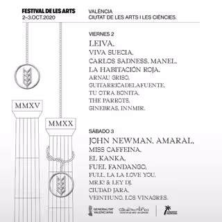El Festival de les Arts 2020 aplaza su sexta edición del primer fin de semana de junio al del 2 y 3 de octubre, a consecuencia de la pandemia del coronavirus, con las mismas ganas y el cartel "prácticamente intacto".
