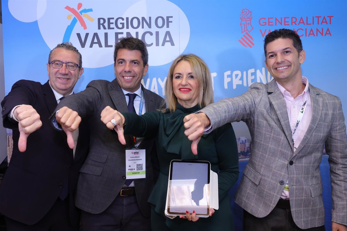 Toni Pérez, Carlos Mazón, Nuria Montes y Fede Fuster anuncian la derogación de la tasa turística en Londres. - GVA