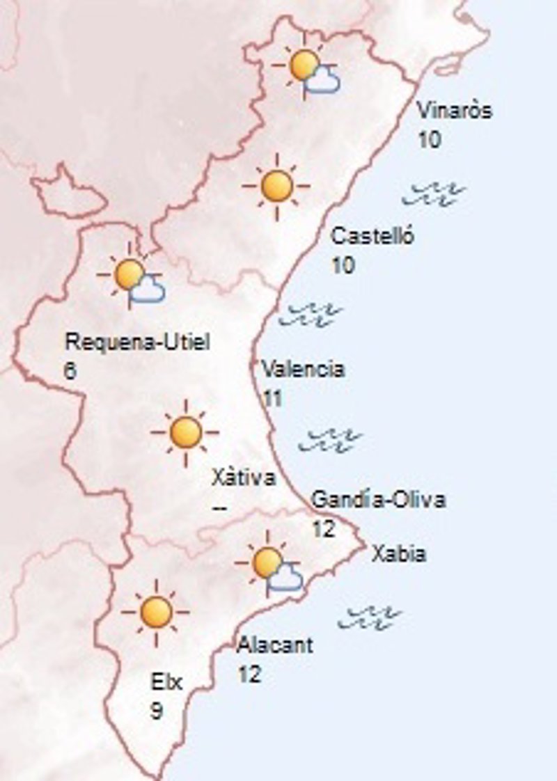 El fin de semana arranca con intervalos de nubes y temperaturas en ascenso en la Comunitat Valenciana, según la predicción de la Agencia Estatal de Meteorología (Aemet).