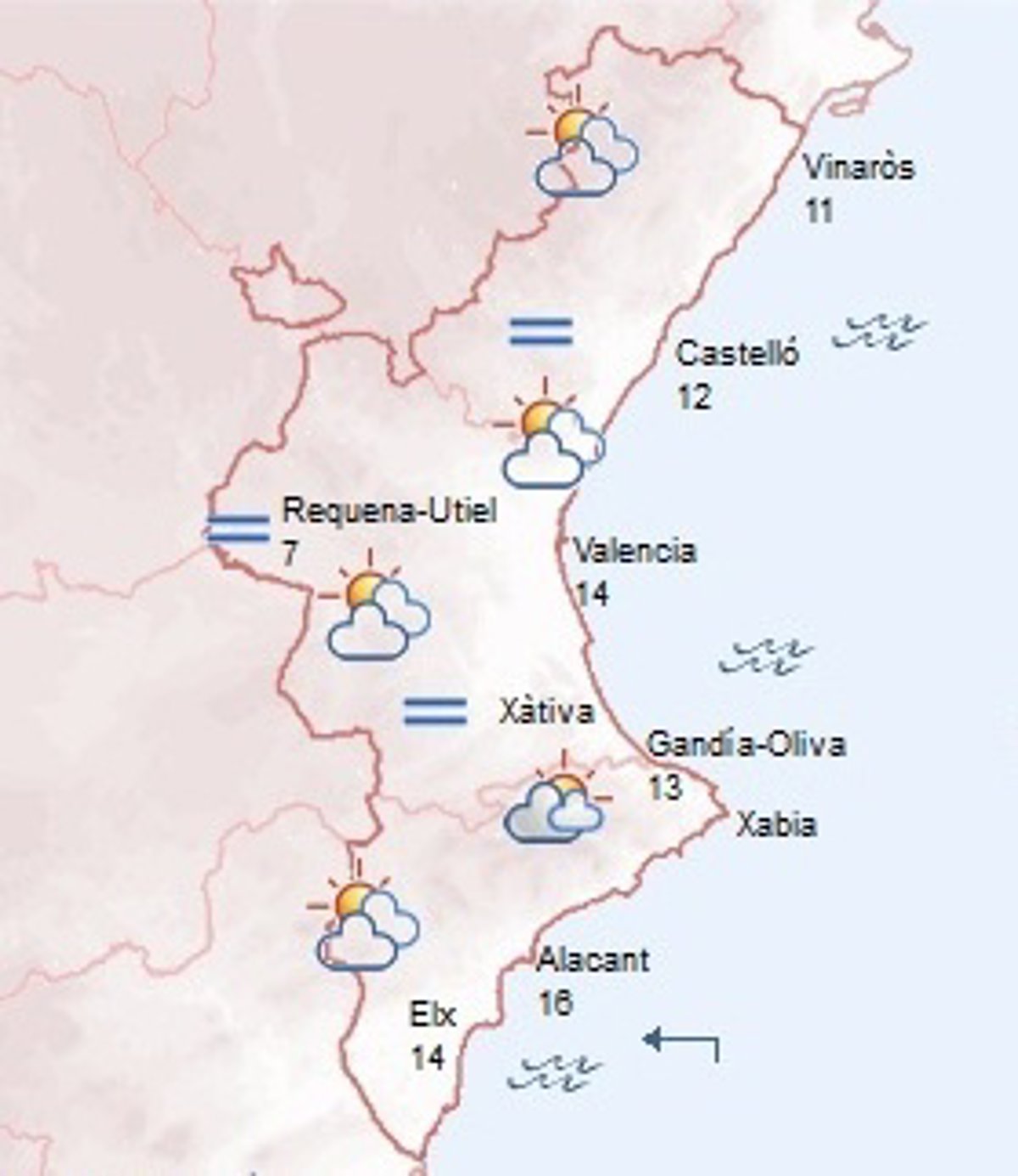 El fin de semana arranca en la Comunitat Valenciana con cielos con intervalos nubosos y no se puede descartar alguna precipitación débil en el tercio sur, según la predicción de la Agencia Estatal de Meteorología (Aemet).