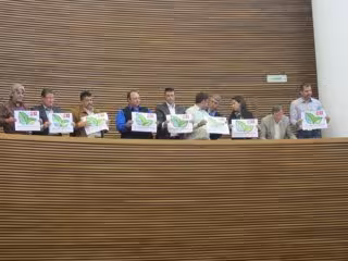 Durante el punto del orden del día del pleno en el que el diputado socialista Francesc Signes defendía una moción sobre la política del Consell en materia de depuración y reutilización de aguas residuales, alrededor de una quincena de alcaldes y concejales socialistas han mostrado pancartas desde la tribuna de invitados en las que podía leerse 'Som vida, som aigua. Aigua per a La Ribera' ('Somos vida, somos agua. Agua para la Ribera').