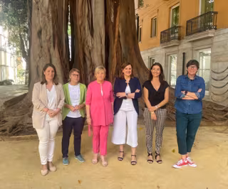 Las seis síndicas de los grupos parlamentarios de Les Corts han coincidido por primera vez y han posado juntas bajo el ficus del patio del parlamento.