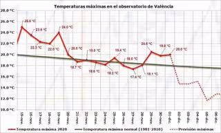 Evolución de las temperaturas máximas en Valncia - AEMET