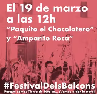 La acción, organizada para el día de San José, a las 12.00 horas, lleva por título 'Festival dels balcons'. "Como indicamos en la campaña, ser músico es, también, estar en los momentos difíciles, ofreciendo todo nuestro apoyo a quienes peor lo están pasando. Y eso lo hacemos de la mejor manera que sabemos, con música", ha asegurado en un comunicado Daniela González, presidenta de la FSMCV.