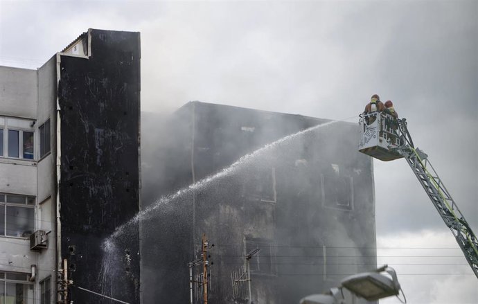 Efectivos de bomberos trabajan en la extinción de un incendio en un edificio de Castelló. - ÁNGEL SÁNCHEZ / EUROPA PRESS