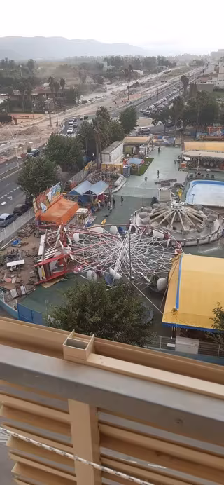 La atracción, ubicada en una feria instalada en el Camí Vell de València, ha caído como consecuencia del fuerte viento. El aviso se ha recibido sobre las 18.30 horas, según ha informado el Consorcio Provincial de Bomberos.