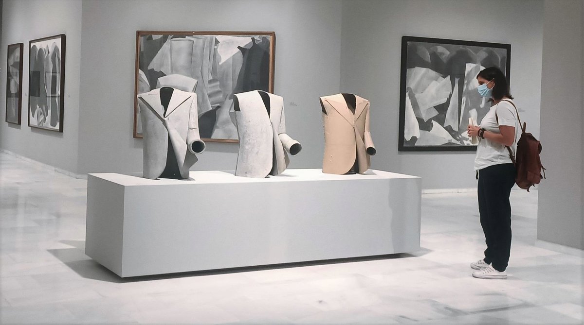 Los visitantes tendrán la oportunidad de pasearse entre los motivos temáticos característicos del autor, como las chaquetas y pantalones, las calabazas o las mazorcas. Todo ello, en un conjunto dominado absolutamente por el claroscuro y la gama de grises.