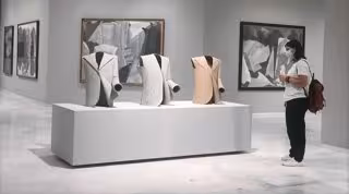 "Cuando se distancia del trabajo en equipo se redefine como artista y se centra en la esencia, el dibujo, y eso le va llevando poco a poco a lo tridimensional", relata Llorens. De este modo, empezó a trabajar con cartón para descubrir enseguida el fibrocemento, que no se había utilizado en escultura al no ser un material noble, y se percata de que tiene las mismas cualidades que el grafito sobre el papel.