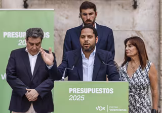 "En ningún caso son los presupuestos que Vox hubiera aprobado", ha señalado en una atención a medios este jueves en València, donde ha presidido una jornada de portavoces autonómicos sobre los presupuestos. Garriga, que ha comparecido junto con el portavoz de Vox en Les Corts, José Mª Llanos; el presidente de Vox en Murcia, José Ángel Antelo, y la portavoz en el Parlamento Balear, Manuela Cañadas, ha apuntado que hace un año el PP les "expulsó de unos gobiernos regionales por decir que no íbamos a contribuir del reparto de la inseguridad y de la inmigración ilegal".
