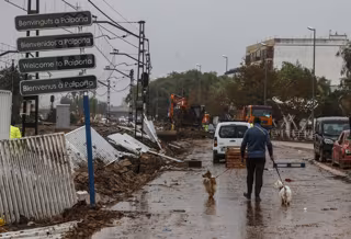 Un hombre pasea a sus perros, a 13 de noviembre de 2024, en Paiporta, Valencia - Rober Solsona - Europa Press