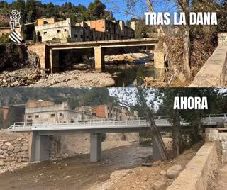 Martínez Mus ha destacado que los trabajos de reconstrucción comenzaron el pasado 23 de enero y forman parte del plan 'Recuperem València', que contempla la restauración de infraestructuras en más de una veintena de municipios afectados en la Comunitat Valenciana, entre las que se encuentran los dos puentes de Buñol.