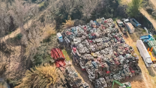 Vista aérea de una parcela en Muro d'Alcoi (Alicante) con vehículos siniestrados por la dana del 29 de octubre en la provincia de Valencia. - COLLA ECOLOGISTA LA CARRASCA-ECOLOGISTES EN ACCIÓ