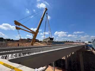 La Conselleria de Medio Ambiente, Infraestructuras y Territorio continúa avanzando en los trabajos de reconstrucción del puente de la CV-33 sobre el barranco del Poyo en la comarca de l'Horta Sud que da acceso a Torrent (valencia), con la instalación de las vigas del vano que colapsó debido a las inundaciones del 29 de octubre.