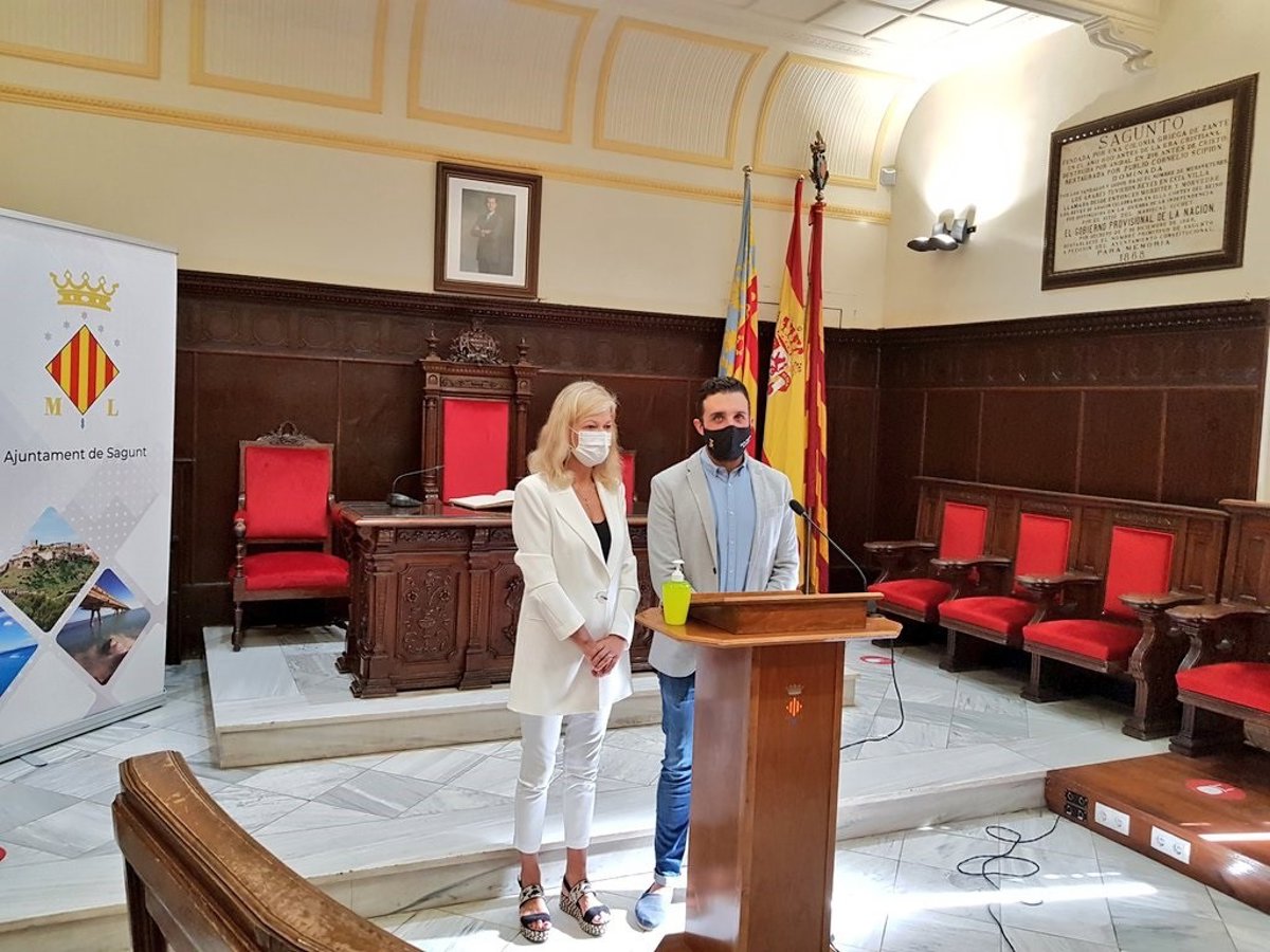 La consellera de Justicia, Interior y Administración Pública, Gabriela Bravo, y el alcalde de Sagunto, Darío Moreno - GVA
