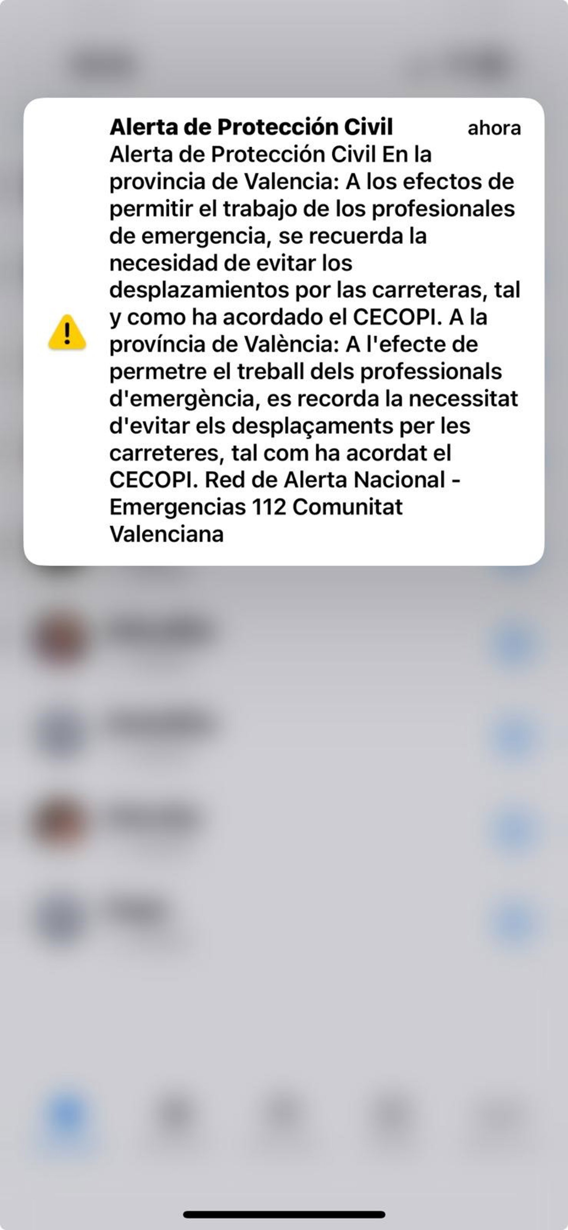 El pasado martes, sobre las 20.10 horas, ya se lanzó un mensaje similar para pedir a la ciudadanía evitar desplazamientos en la provincia de Valencia.