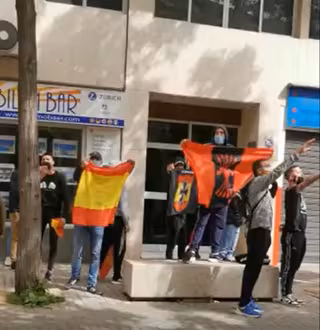 El grupo lanzó insultos mientras realizaba el saludo fascista y mostraba algunas banderas preconstitucionales a Rufián, quien compartió un vídeo en su perfil en la red social Twitter que recoge este momento, acompañado de los mensajes "tienen balas para todos, siempre en pie" y "Democracia o fascismo". En el vídeo se observa a una decena de personas que profieren insultos como "maricón", "hijo de puta" y le instan a irse, al tiempo que realizan el saludo nazi al representante de Esquerra Republicana.