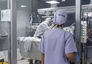 Trabajadores sanitarios totalmente protegidos atienden a un paciente con coronavirus ingresado en la UCI del Hospital Arnau de Vilanova, en Valencia, Comunidad Valenciana, (España), a 24 de abril de 2020. - Rober Solsona - Europa Press - Archivo
