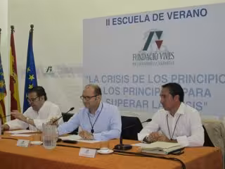 El exconseller de Economía de la Generalitat ha participado este viernes, junto al diputado autonómico del PP Rubén Ibáñez, en la Escuela de Verano de la Fundació Vives, que ha "reivindicado" las cuentas en tiempos de crisis. Este ha sido el hilo conductor de las ponencias de este viernes, donde se ha debatido sobre la economía nacional y la de la Comunitat Valenciana en particular, según ha informado la organización en un comunicado.