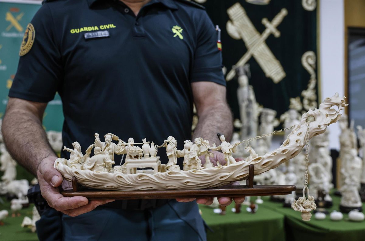 La operación comenzó el 28 de octubre de 2024, cuando se detectó un tráfico "inusualmente elevado" de ofertas de piezas de marfil en la provincia de Valencia, según ha explicado el coronel Juan Martínez Ros este lunes, en una rueda de prensa, en la que ha precisado que la empresa mercantil donde se exponían los 127 artículos incautados