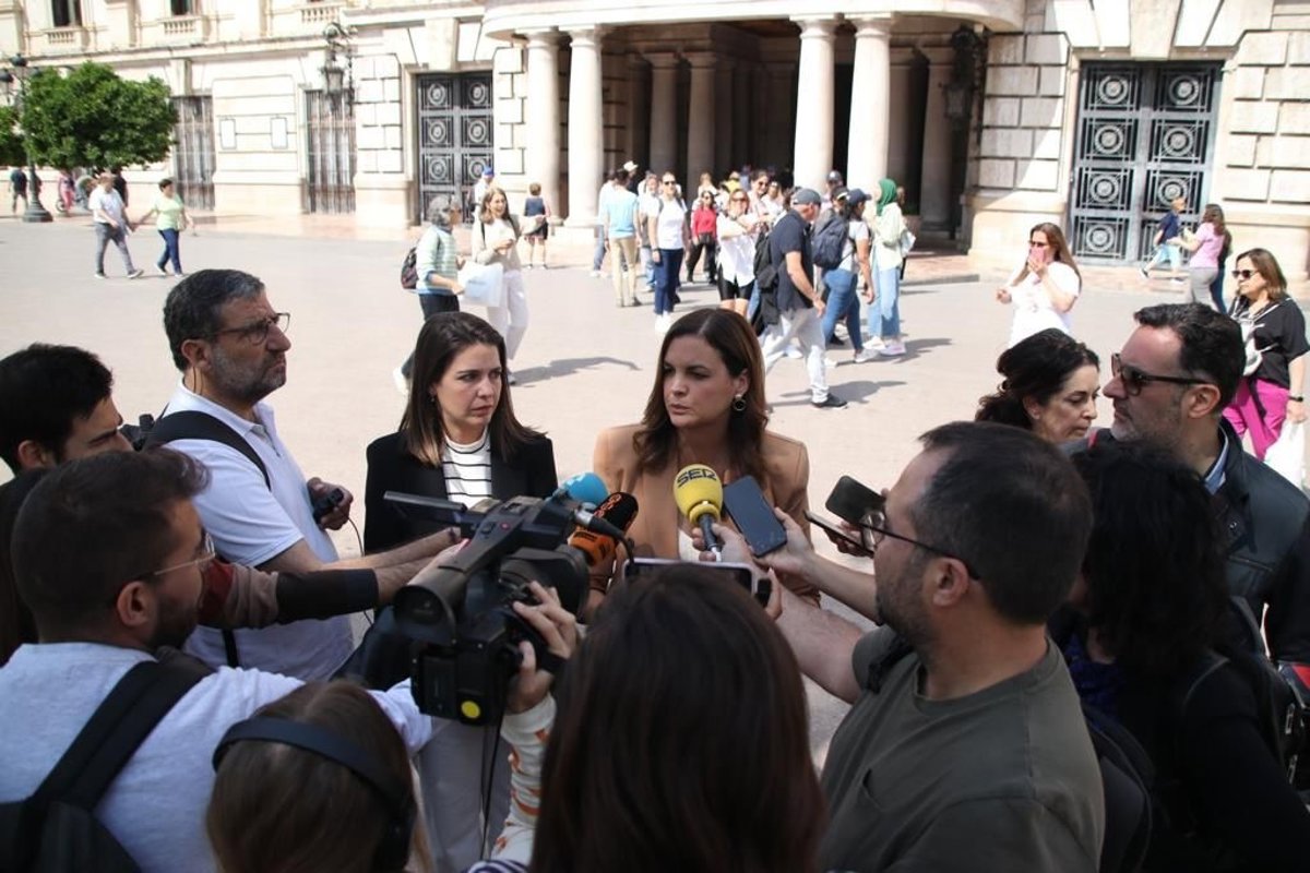 Gómez atiende a los medios en la plaza del Ayuntamiento - PSPV