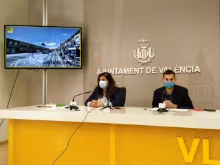 Los vicealcaldes de Valncia, Sandra Gómez y Sergi Campillo, en la rueda de prensa posterior a la Junta de Gobierno Local. - TWITTER AYUNTAMIENTO DE VALNCIA