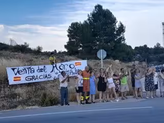Vecinos de Venta del Moro con la pancarta - CONSORCIO DE BOMBEROS