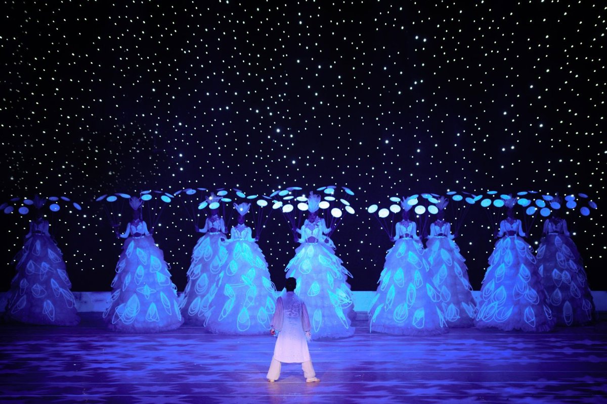 El montaje cuenta con un vestuario conformado por 2.000 piezas de seda confeccionadas a mano y una cuidada banda sonora compuesta por la Orquesta Sinfónica Nacional China.