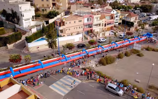 La localidad valenciana de Ontinyent ha ampliado su oferta de actividades para todas las edades dentro de 'La Gran', la programación municipal impulsada por la Concejalía de Feria, Fiestas y Tradiciones para complementar los actos de la Sociedad de Festeros durante la Semana Grande de Moros y Cristianos. Para este año, ha incorporado como novedad un tobogán acuático de cien metros para niños y niñas, que se ubica junto al Museo del Textil.