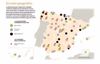 Además, el hipermercado Alcampo de Vigo se ha situado como el establecimiento más barato de España, siendo la primera vez que un local perteneciente a una cadena nacional ocupa esta posición y está seguido por varios supermercados Dani de Granada y Jaén, que ocuparon la primera posición el año pasado.