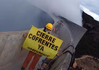Activistas de Greenpeace durante la protesta en Cofrentes