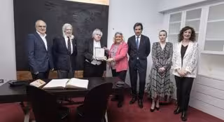 El presidente del Palau de la Música y concejal de Cultura del Ayuntamiento de València, José Luis Moreno, y la primera teniente de alcalde y concejal de Hacienda y Participación, María José Ferrer San Segundo, le entregaron este miércoles el galardón, que reconoce a las personalidades del mundo de la música que tienen o han tenido una especial vinculación con València.