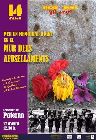 En este sentido, y para conmemorar esta efeméride, el cementerio de Paterna (Valencia) acogerá el próximo domingo un acto, con el que se pretende recordar el régimen republicano y homenajear a los fallecidos durante la Guerra Civil Española y el franquismo.