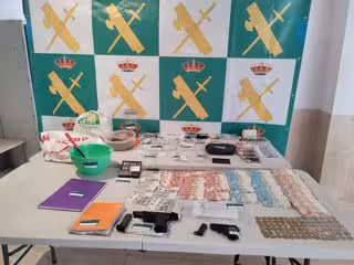 En el registro efectuado en la vivienda se ha intervenido 118 gramos de marihuana, 33 gramos de cocaína, 28 gramos de cristal, 16 pastillas de metanfetaminas, 2.000 euros en efectivo, dos básculas de precisión, dos pistolas de fogueo y dos vehículos, según ha informado el instituto armado en un comunicado.
