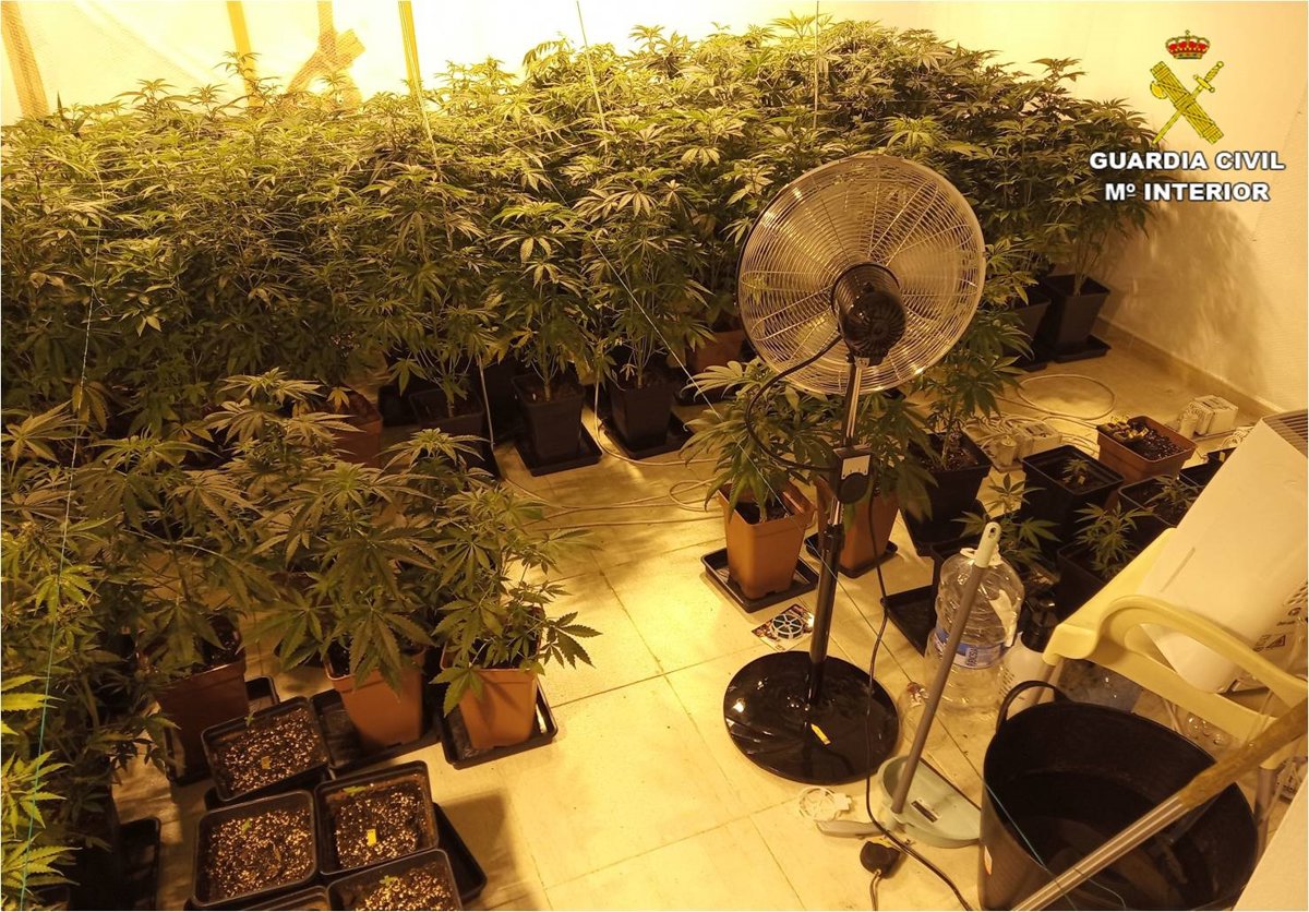 La Guardia Civil ha detenido en La Nucia (Alicante) a dos hombres como presuntos autores de un delito contra la salud pública, al encontrar en su domicilio un cultivo indoor de marihuana con 129 plantas. Los agentes acudieron a la vivienda alertados por los detenidos tras, supuestamente, haber sido víctimas en su casa de un asalto y agresión por parte de otros dos hombres.