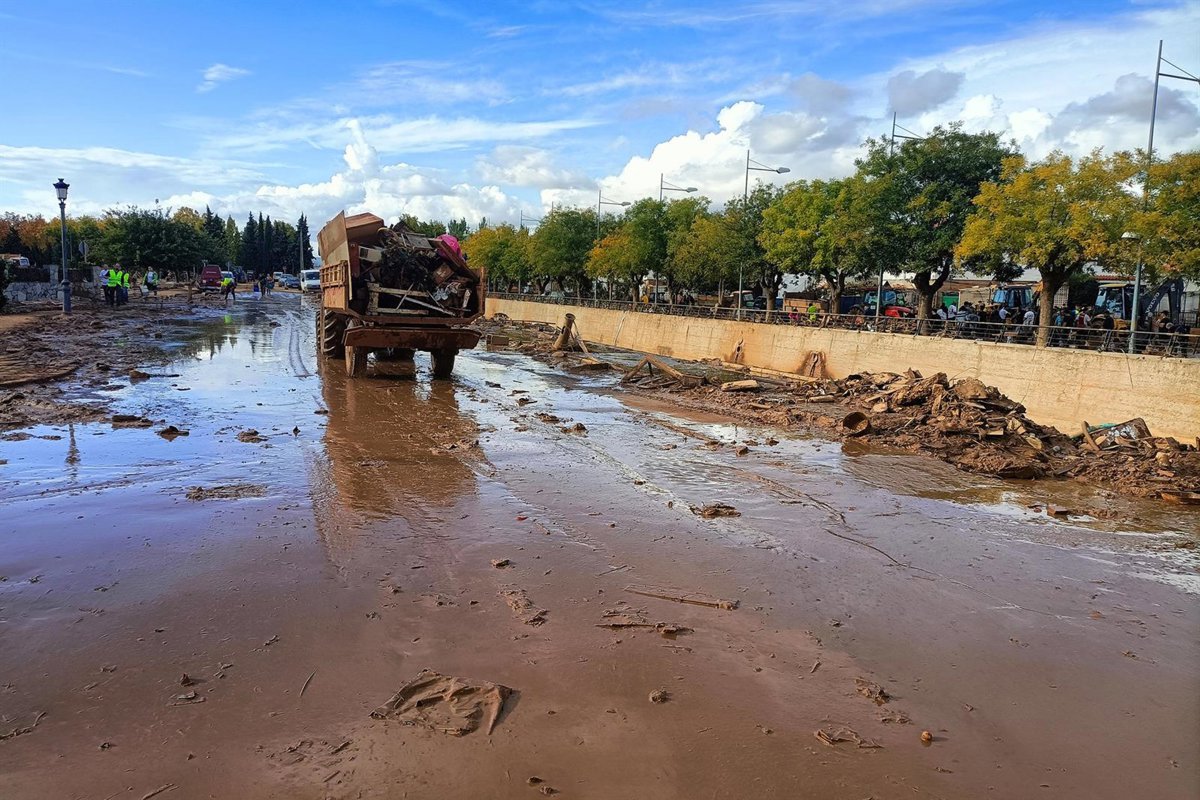 Archivo - Un tractor colabora en la limpieza de las calles, a 1 de noviembre de 2024, en Utiel, Valencia, ARCHIVO. - Gabri Solera - Europa Press - Archivo