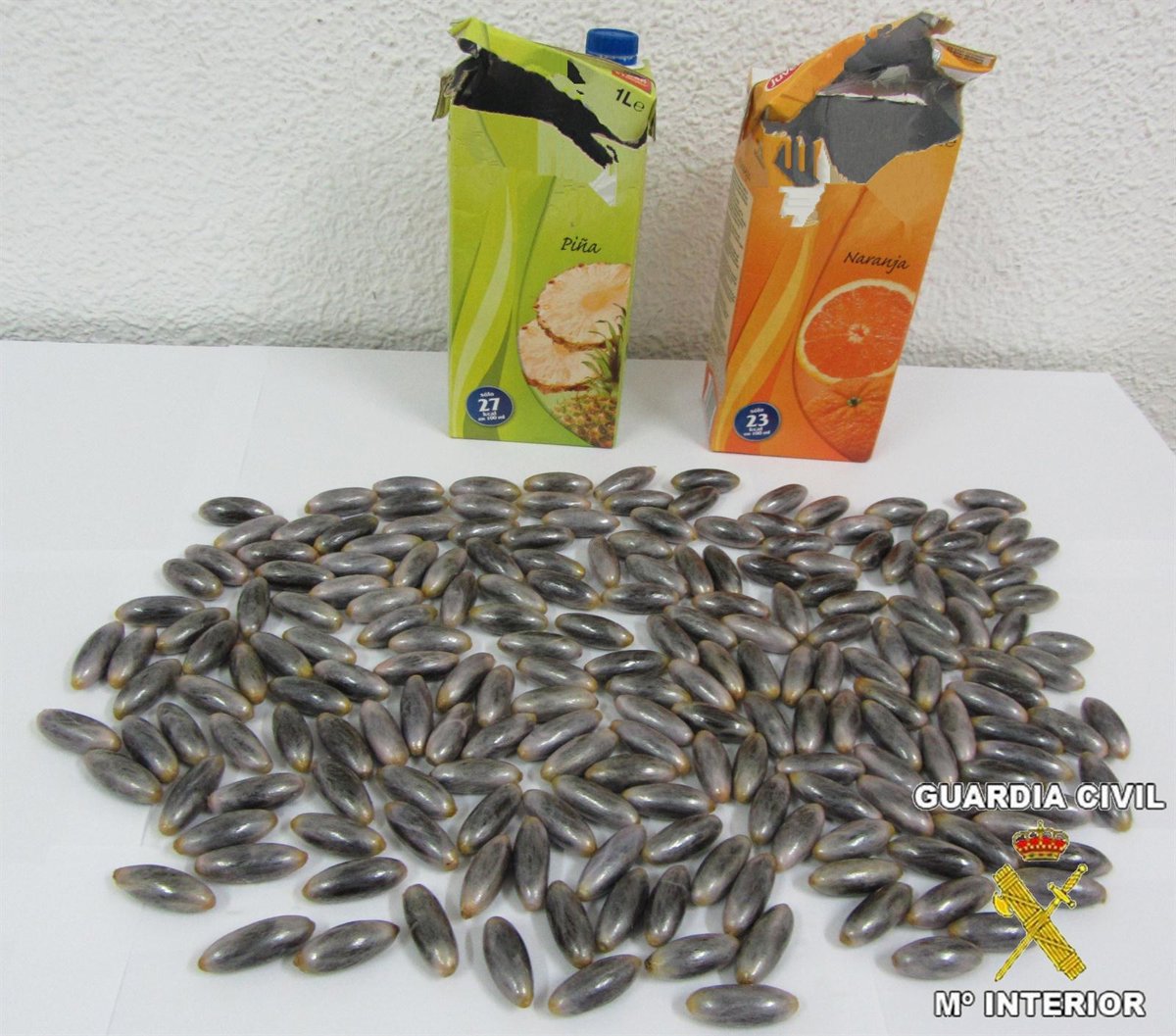 La Guardia Civil ha detenido en el Muelle La Pansa, en la localidad de Denia (Alicante), a un hombre que se disponía a embarcar en un ferri de línea regular con destino al Puerto de San Antonio (Ibiza), en cuya furgoneta localizaron 197 bellotas de hachís ocultas en dos briks de zumo, con un peso total de un kilogramo.