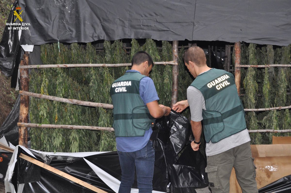 Los dos detenidos en esta operación estaban al cuidado de la plantación e, incluso, vivían en un campamento improvisado en las inmediaciones del cultivo. En el lugar se hallaron varios cobertizos fabricados con palos de madera y cubiertas de plástico verdes con el único fin de pasar desapercibido.