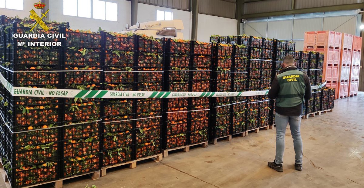 Agentes de la Guardia Civil han intervenido en un almacén de Nules (Castellón) 12 toneladas de naranjas e investigan a dos responsables de estas instalaciones, ya que al parecer recolectaban la fruta de huertos colindantes al que tenían autorizado.